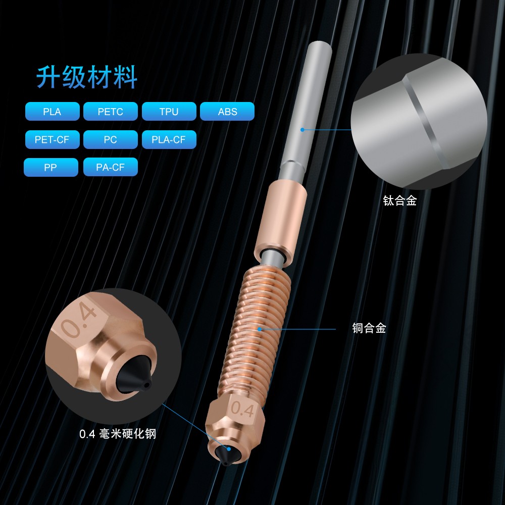 新款创想K1C/K1 MAX陶瓷热端套件一体硬化钢喷嘴高流量3D打印配件