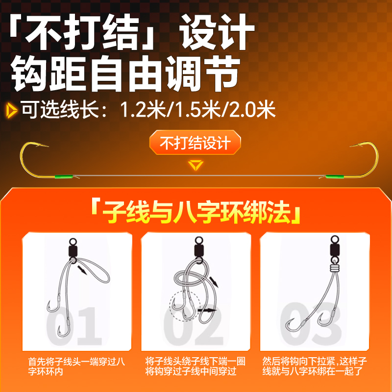 赤袖绑好鱼钩套装全套红袖子线双钩成品防缠绕鱼线鱼具钓鱼用品