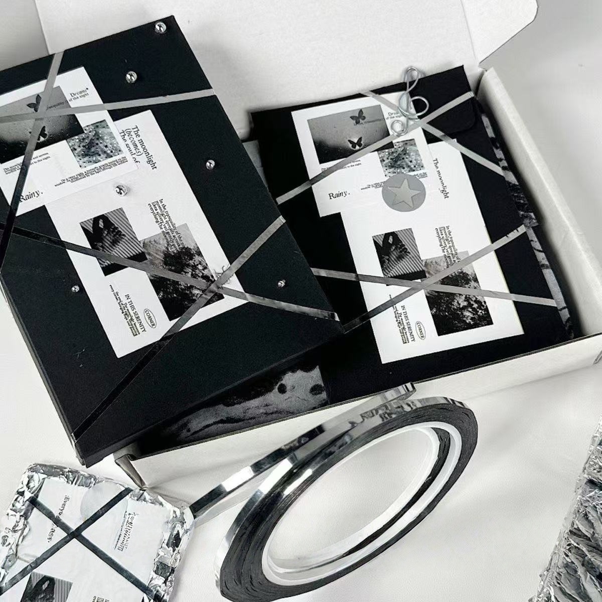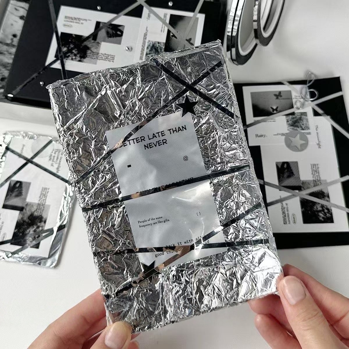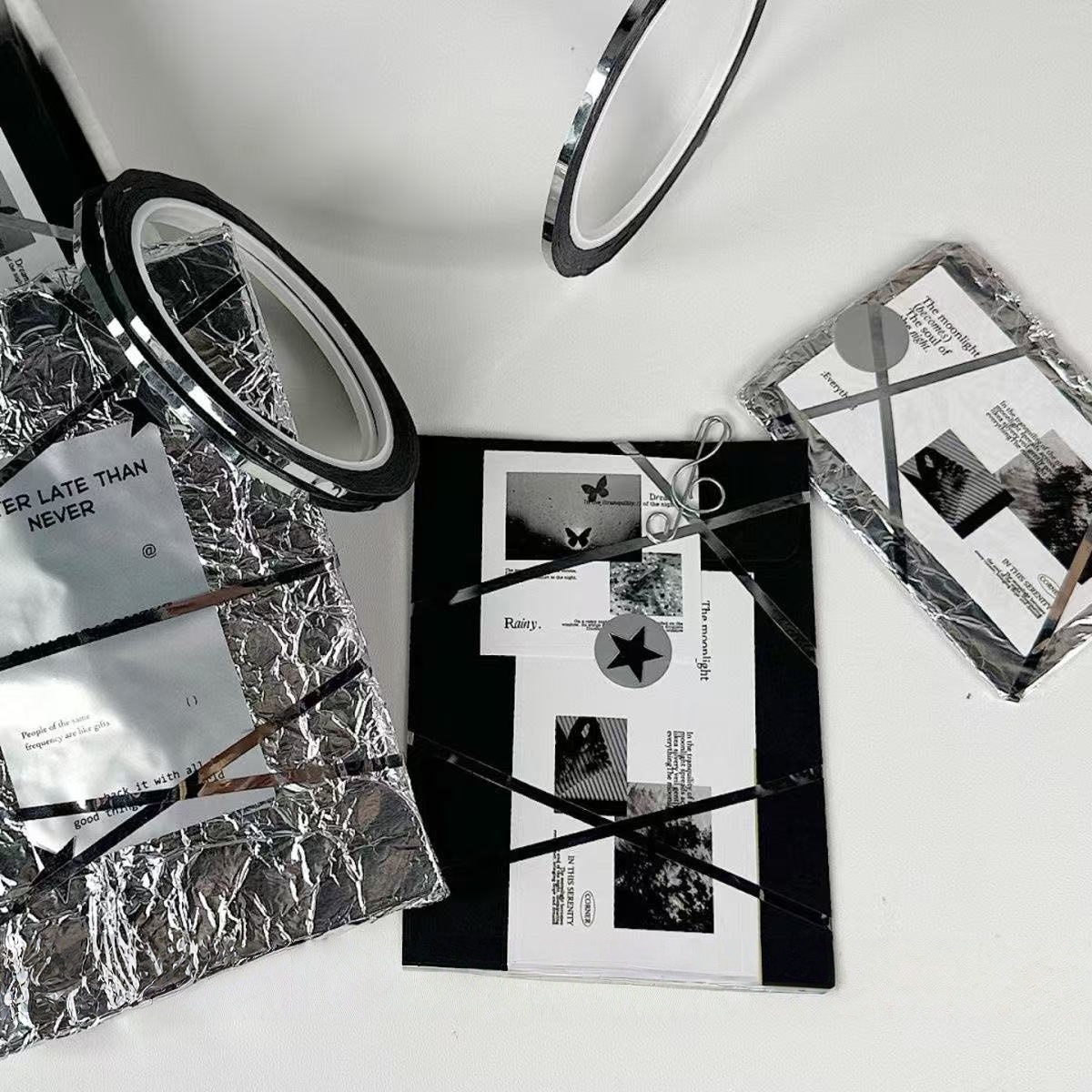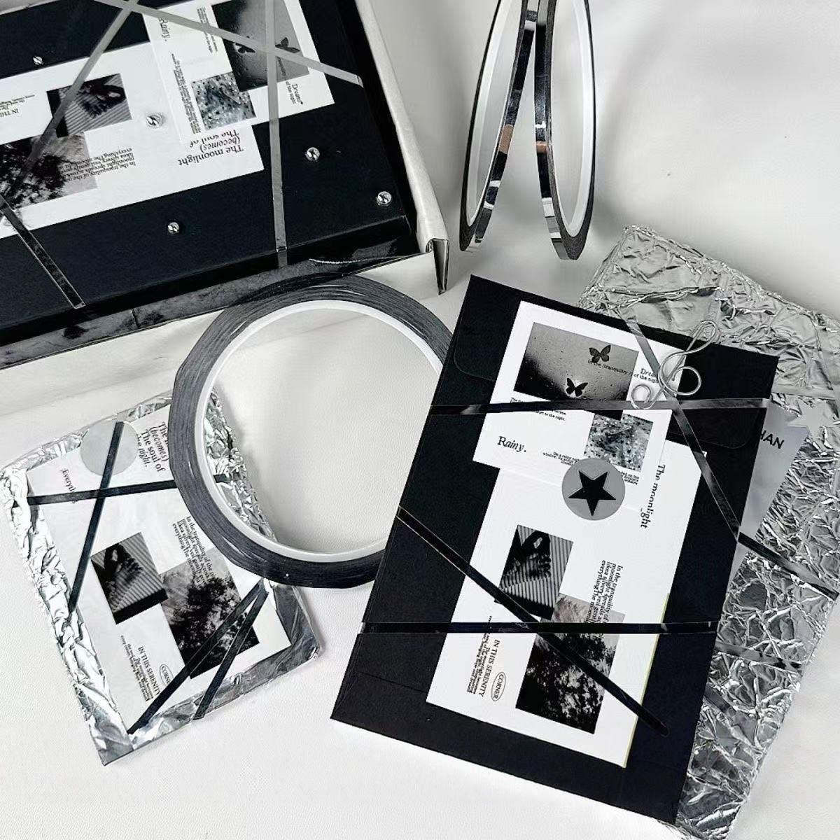 ins高颜值超细银色手帐胶带出物打包材料礼品打包DIY装饰高级感胶带小卡出卡通用型手账装饰礼品包装胶纸缠绕