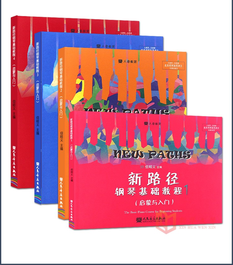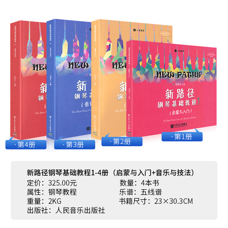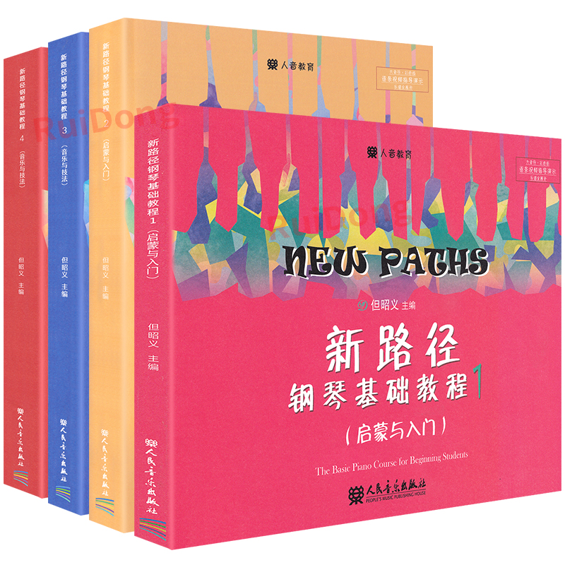 正版全套4册新路径钢琴基础教程1-4 人民音乐社 但昭义著 幼儿儿童启蒙与入门钢琴基础练习曲教材教程 彩色大音符版钢琴初学者教材