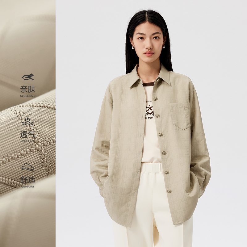 水云间卡其色长袖衬衫外套女量感廓形衬衣叠穿上衣宽松2025冬新款