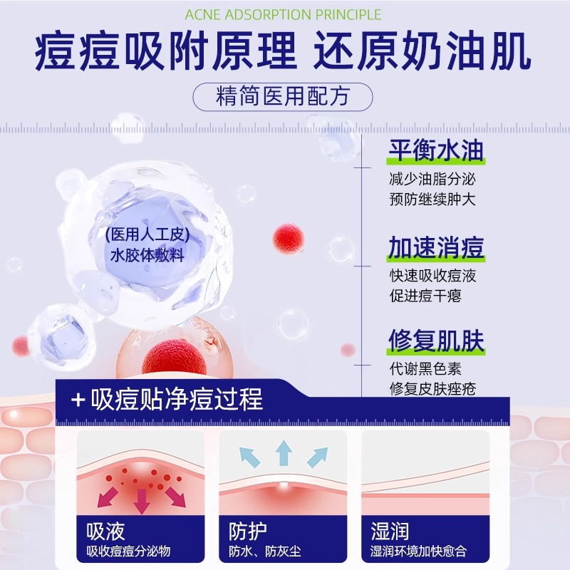 医用痘痘贴修复消炎痘印红肿水胶体敷料吸脓非人工皮隐形祛豆豆贴