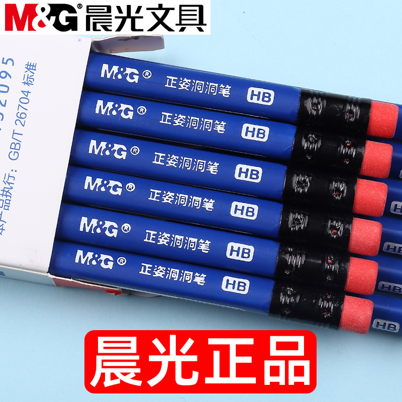 晨光正品洞洞铅笔带橡皮头2B铅笔小学生专用无毒无铅2比三角杆hb矫正握姿考试专用初学者儿童写字笔铅笔批发