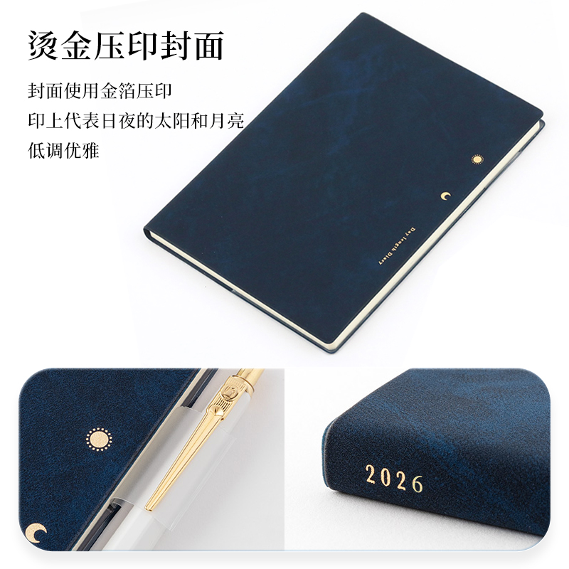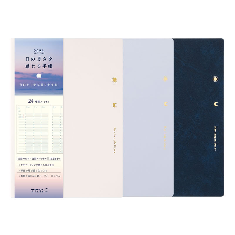日本MIDORI 2026年昼夜渐层B6周计划时间轴月相24小时日程手帐