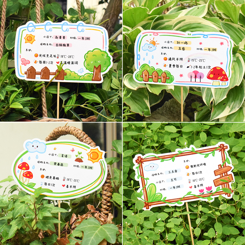 开学季植物角养护人卡片小学生用班级绿植名称提示贺卡幼儿园儿童园艺花卉种植作业明信片diy盆栽标识记录卡