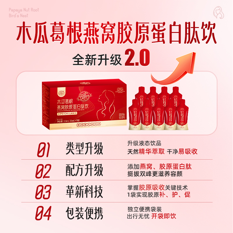 香港宝芝林胶原蛋白肽饮小分子燕窝木瓜葛根口服液正品官方旗舰店