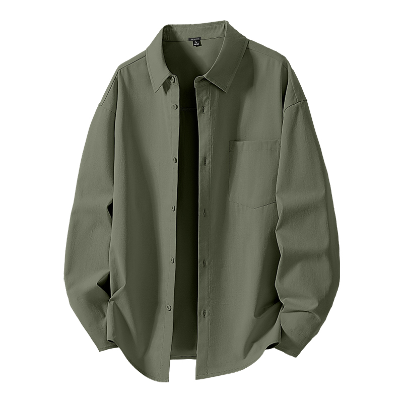 夏装中年男士长袖衬衫冰丝薄款爸爸装纯色宽松爷爷衬衣中老年人