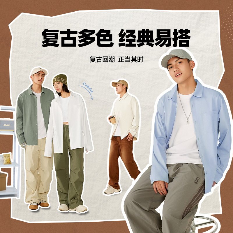 NN真维斯长袖衬衫男款夏季潮流休闲翻领上衣男青少年户外防晒衬衣