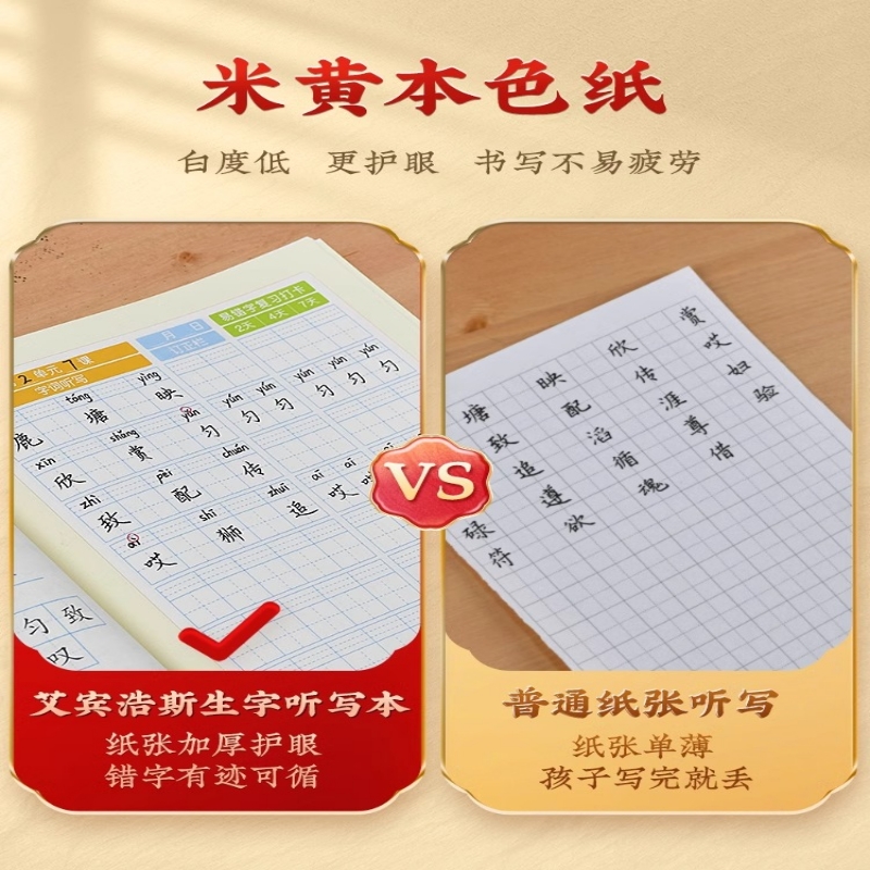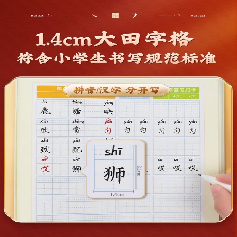 华夏万卷艾宾浩斯生字听写摘抄本语文听写默写常用字打卡练习本小学生一年级二年级三年级四五六年级田字本生字词语成语句子默写本