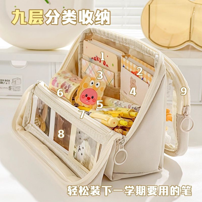 可拆卸痛包笔袋ins风女生2025新款高颜值文具盒学生大容量铅笔盒站立式九层透明初高中生多层多功能收纳袋