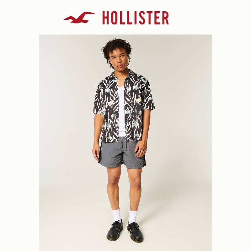 Hollister25夏新款亚麻混纺情侣度假花衬衫男装女装325-5228