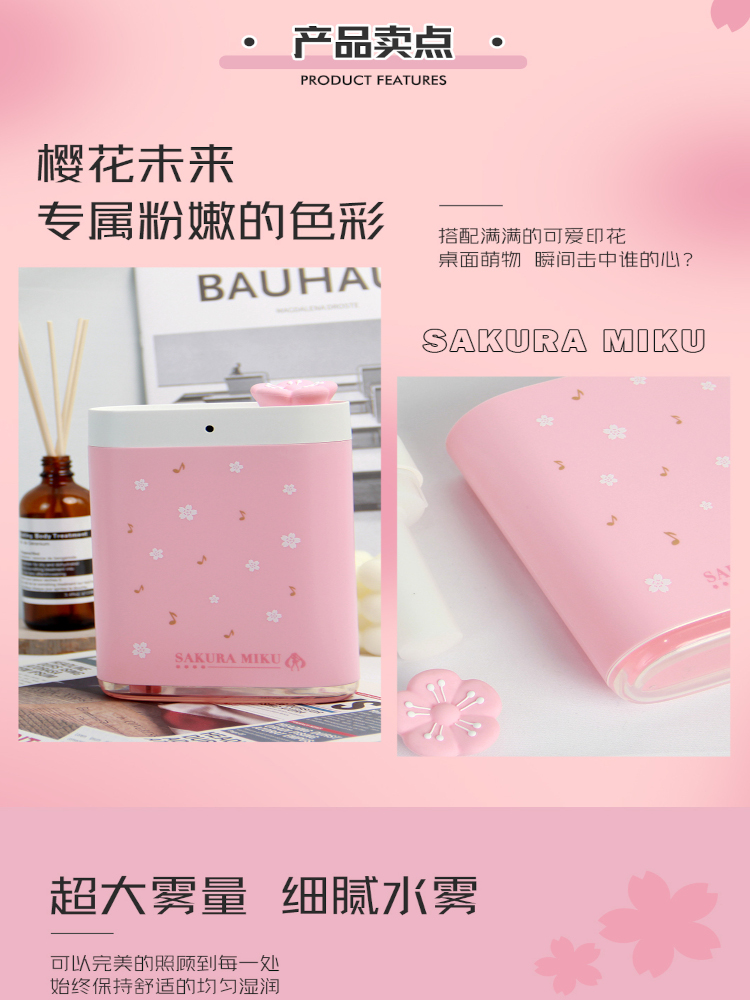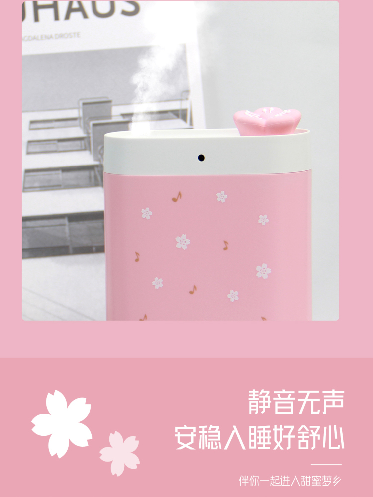 青丘文创春日花语樱花未来办公室学习桌少女粉色水雾小巧加湿器