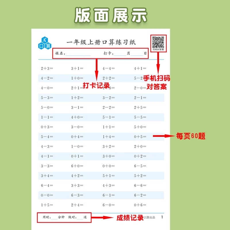 口算练习纸天天练口算题100以内混合加减法天天练三年级上册描红楷体临摹小学生练习纸英语字帖四五六年级素材积累手撕活页默写