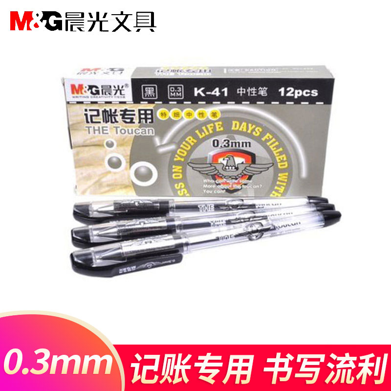 晨光财务0.3mm记账专用细笔尖中性笔黑色书写流利收据票据财务出