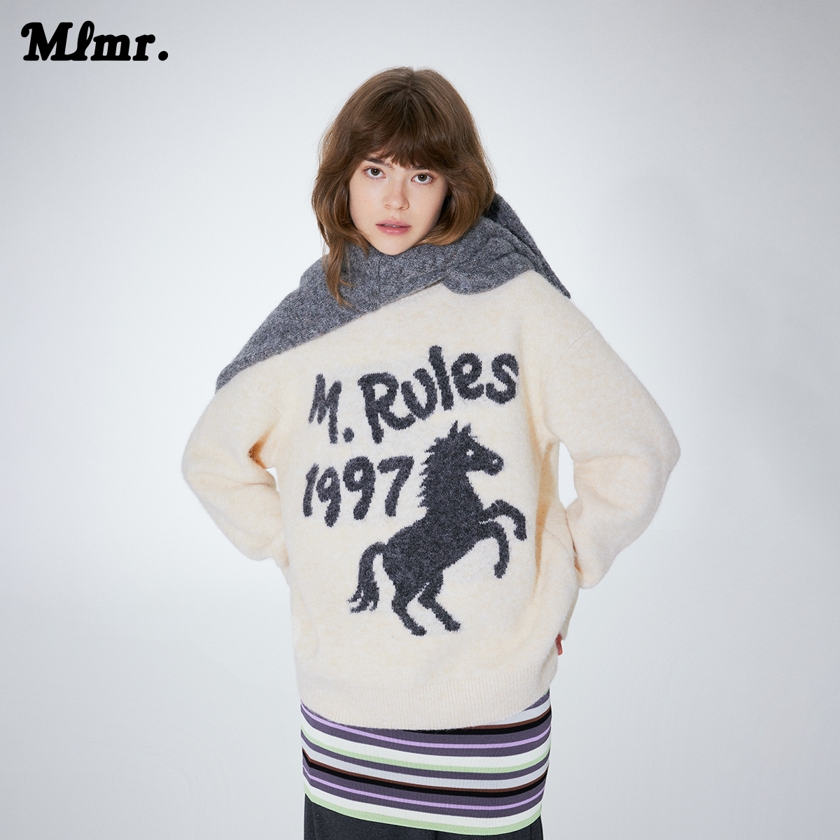 MLMR秋冬季节新款时尚百搭潮流针织衫毛衣宽松马海毛双色男女