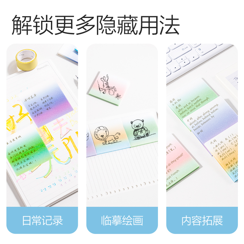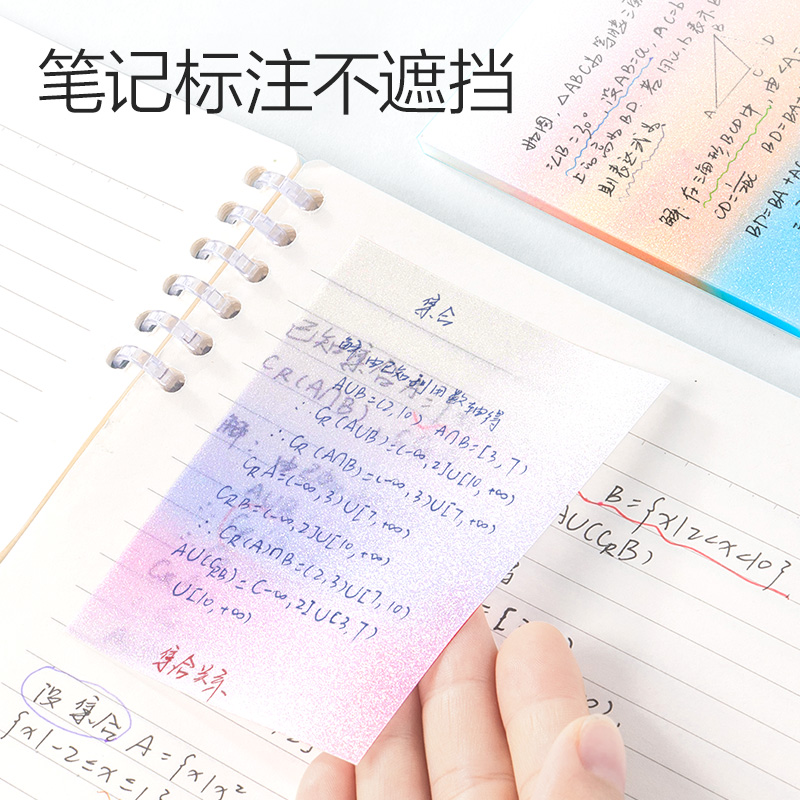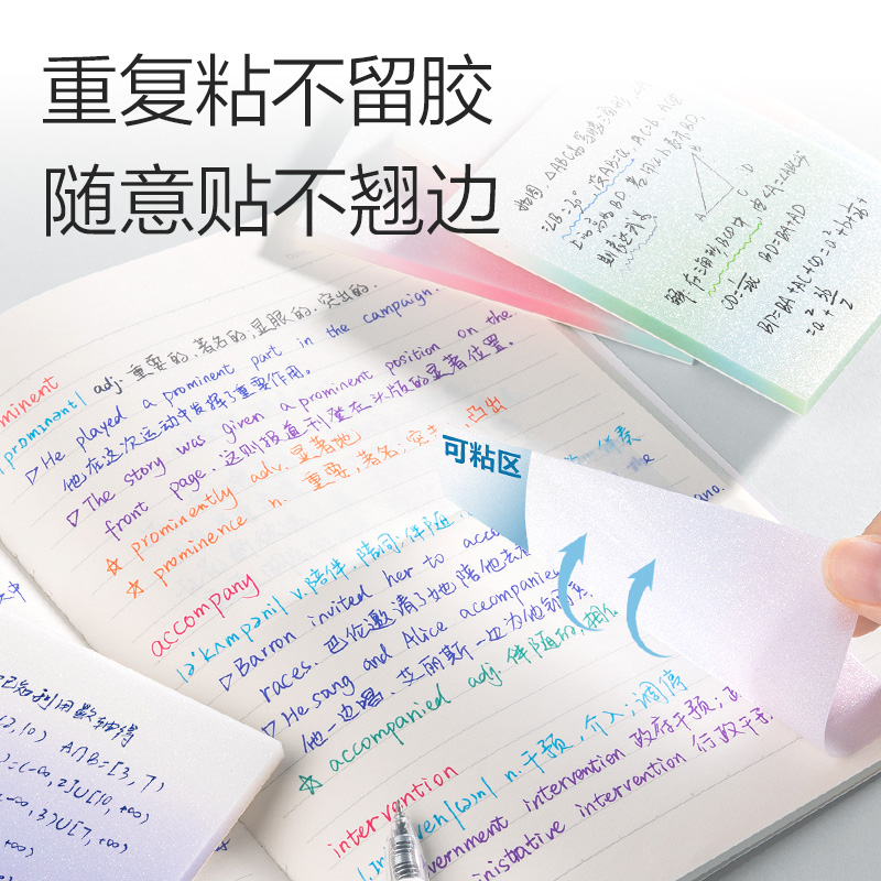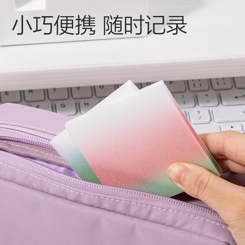 得力渐变珠光透明便利贴强粘性快干ins便利贴学生手帐备忘记事本少女心便签纸可撕多色可再贴便条纸便签纸本
