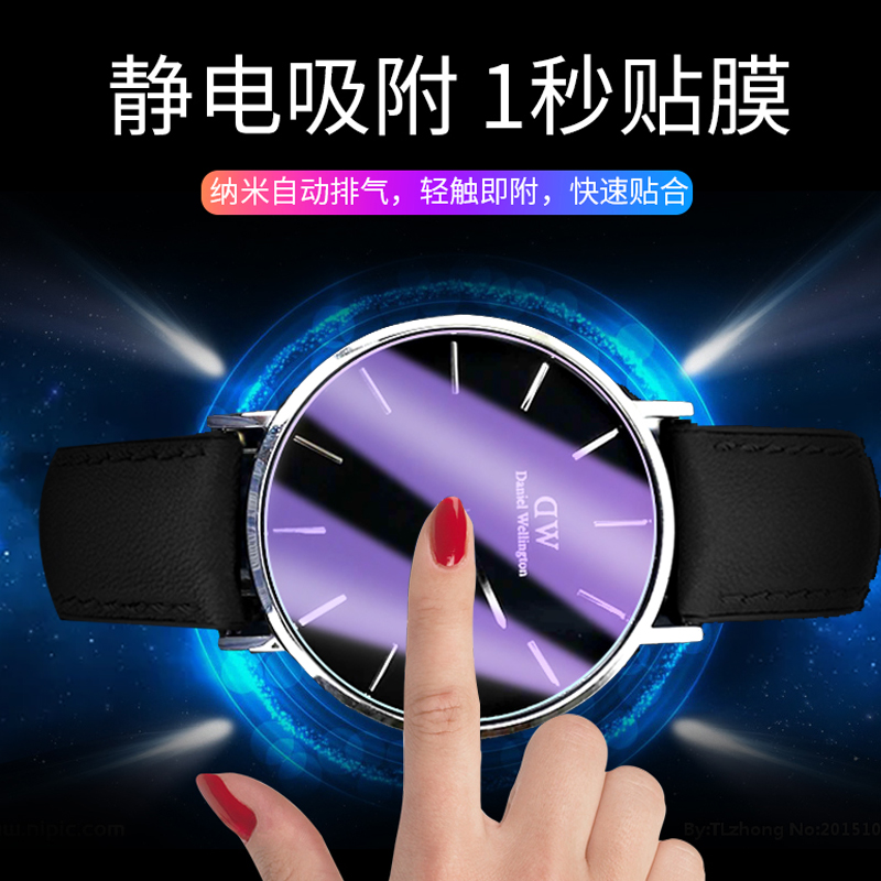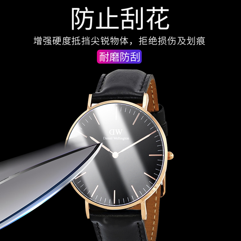 适用DW手表钢化膜DW表盘膜32/36mm手表膜26/28/30/34/38/40mm丹尼尔惠灵顿手表保护膜女圆形贴膜镜面防爆男