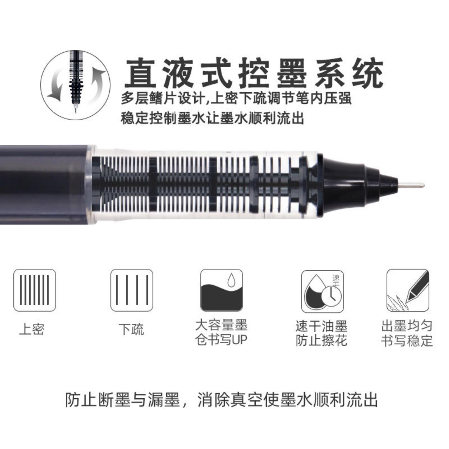 直液笔直液式走珠笔0.5mm针管笔头学生考试黑蓝红色巨能写速干