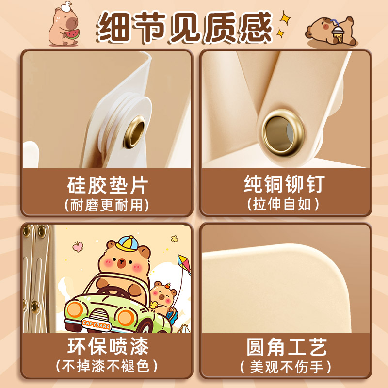卡皮巴拉可伸缩书立带笔筒书架一体桌面书本收纳架高中生挡板书夹折叠固定立架学生用桌上立书架放书神器收缩