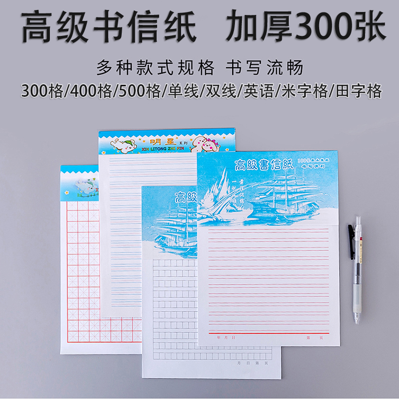 加厚原稿纸400格信纸文稿纸方格语文纸入党申请书纸学生用米字格田字格书信纸黑色格子单行双线纸500字方格纸