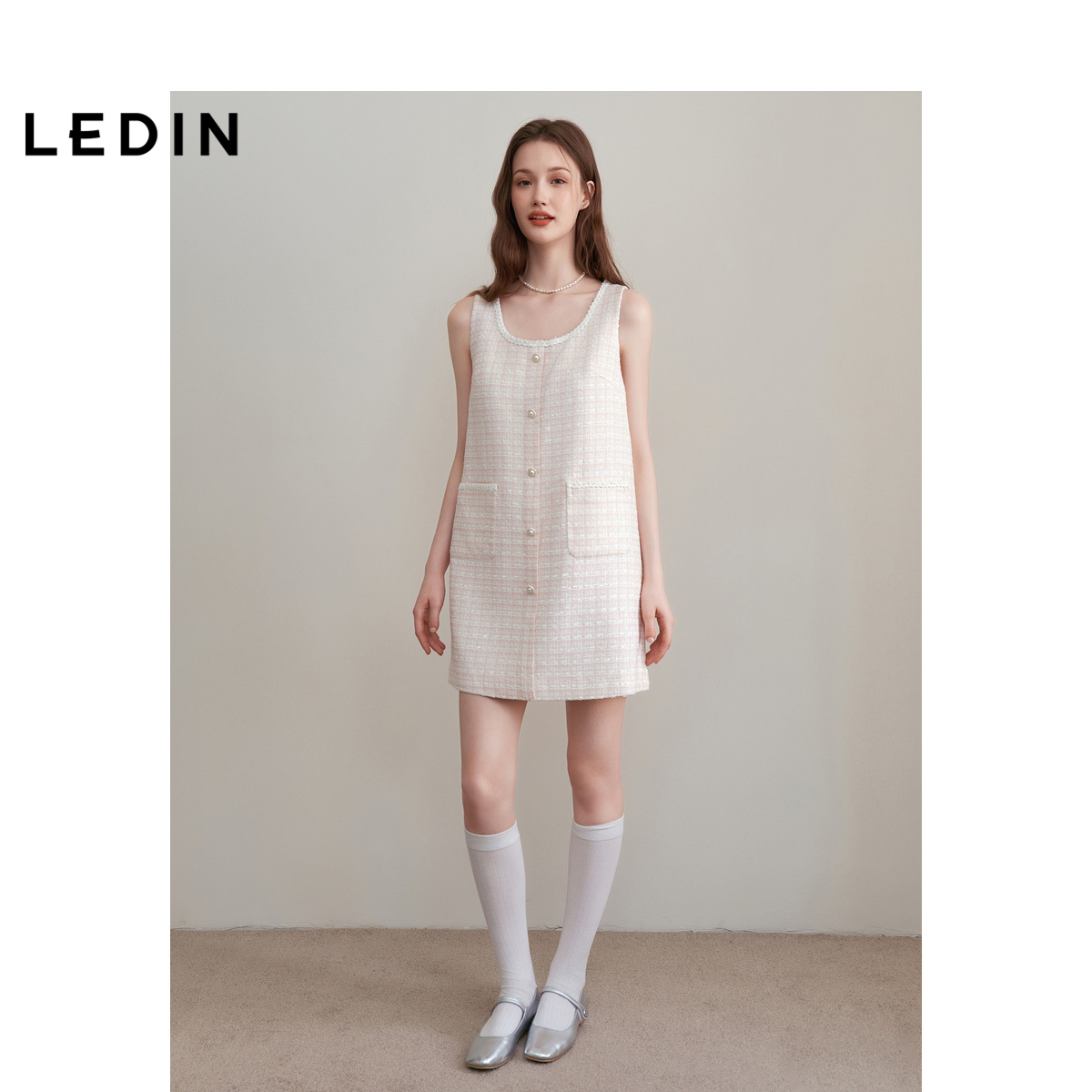 [预]乐町千鸟格小香风连衣裙春季新年氛围感圆领温柔无袖裙显瘦*