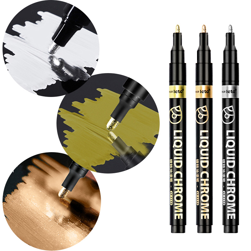 电镀马克笔镜面镀铬油漆笔五金属色手办涂鸦工业记号笔修复模型汽车高光补漆改色笔防水不掉色银色金色diy