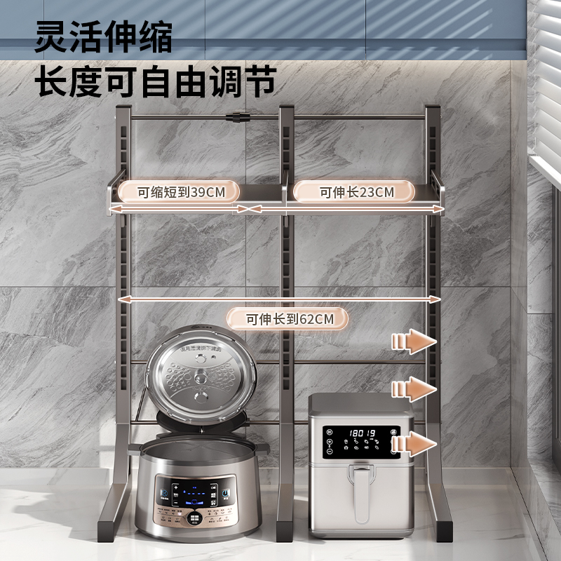 枪灰微波炉置物架厨房台面多功能伸缩电饭煲烤箱一体双层收纳支架