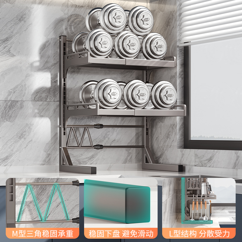 厨房置物架家用多功能锅具收纳架多层橱柜下水槽灶台分层放锅架子