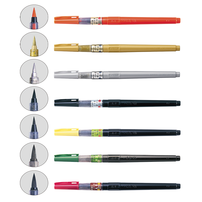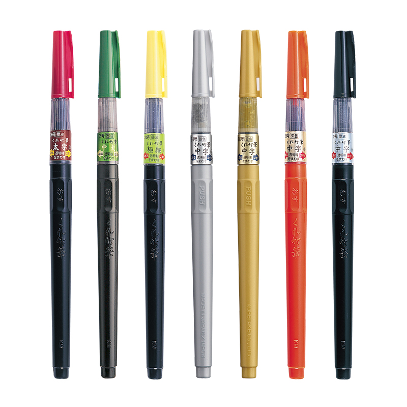 日本吴竹KURETAKE 科学毛笔 灌水毛笔 便携毛笔 写经自来水笔 抄经小楷笔 青墨 朱墨 黑细字 极细 中字 太字