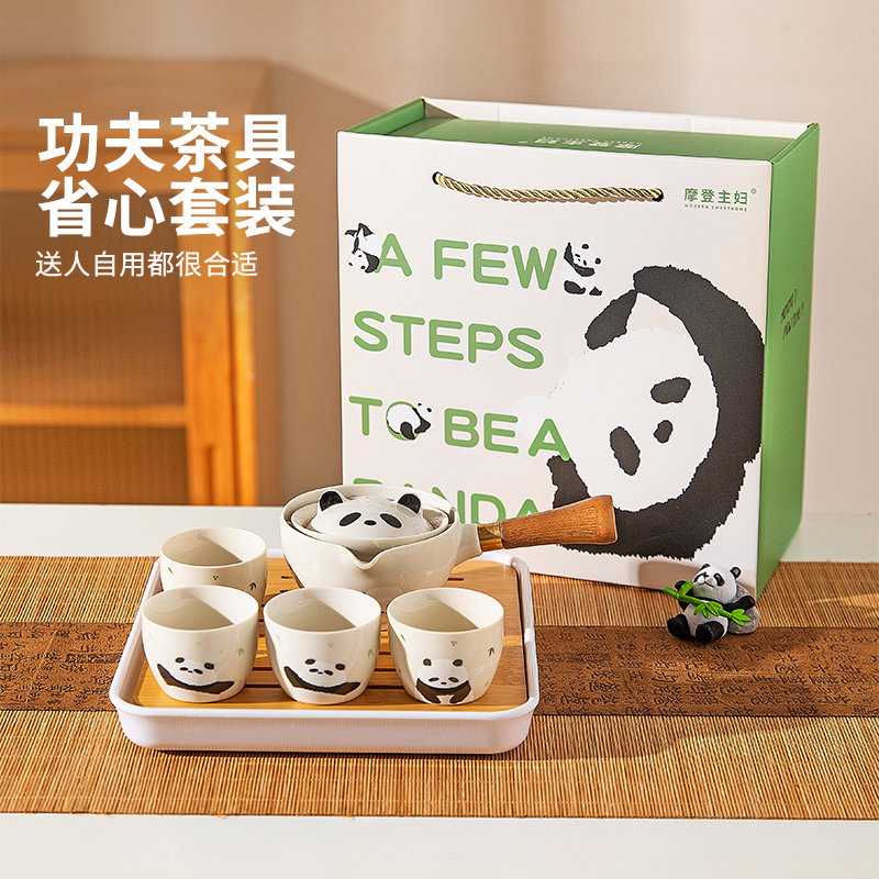 摩登主妇mototo熊猫功夫茶具套装便携一人饮泡茶壶家用陶瓷喝茶杯