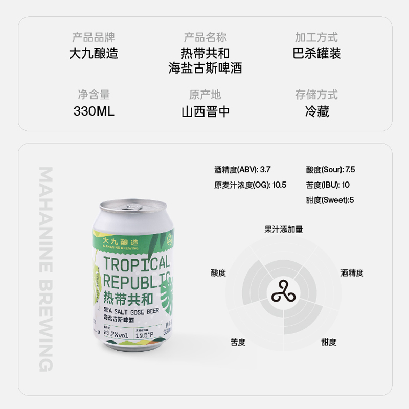 大九酿造热带共和海盐古斯酸啤精酿啤酒柠檬西柚百香果啤鲜啤水果
