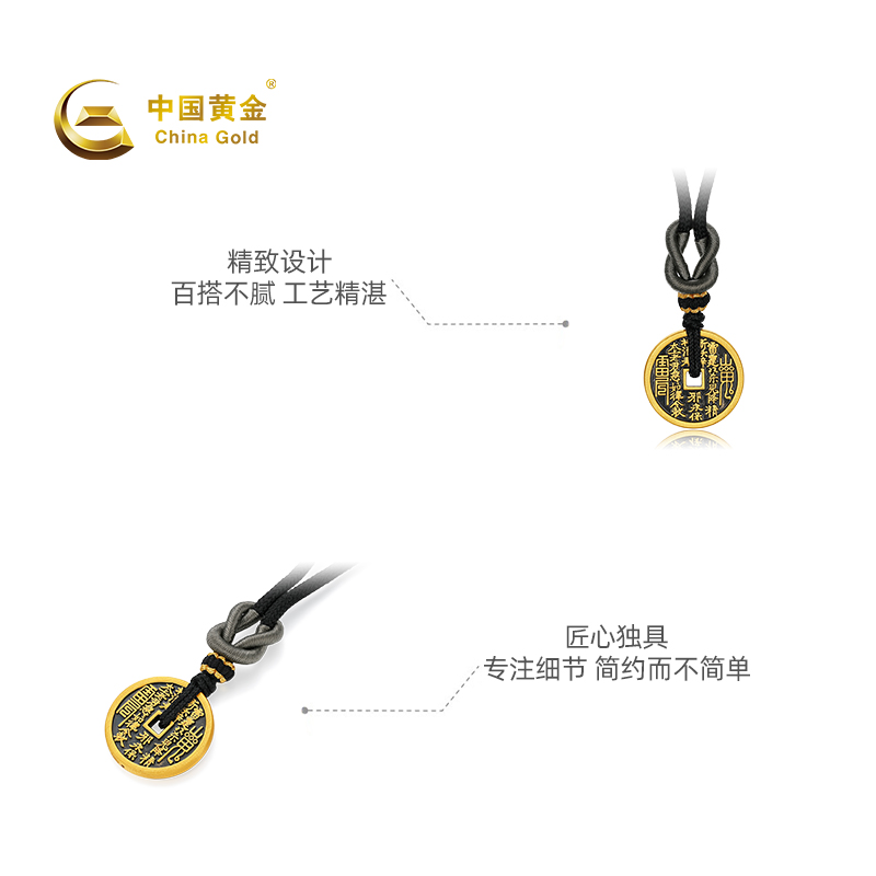 【中国黄金官方店】电黑山鬼花钱5D硬金挂坠时尚首饰新品送女友