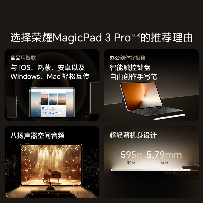 【新品上市】HONOR/荣耀MagicPad3 Pro 13.3英寸 平板电脑 第五代骁龙8至尊芯片 AI PC级生产力官方官网新品