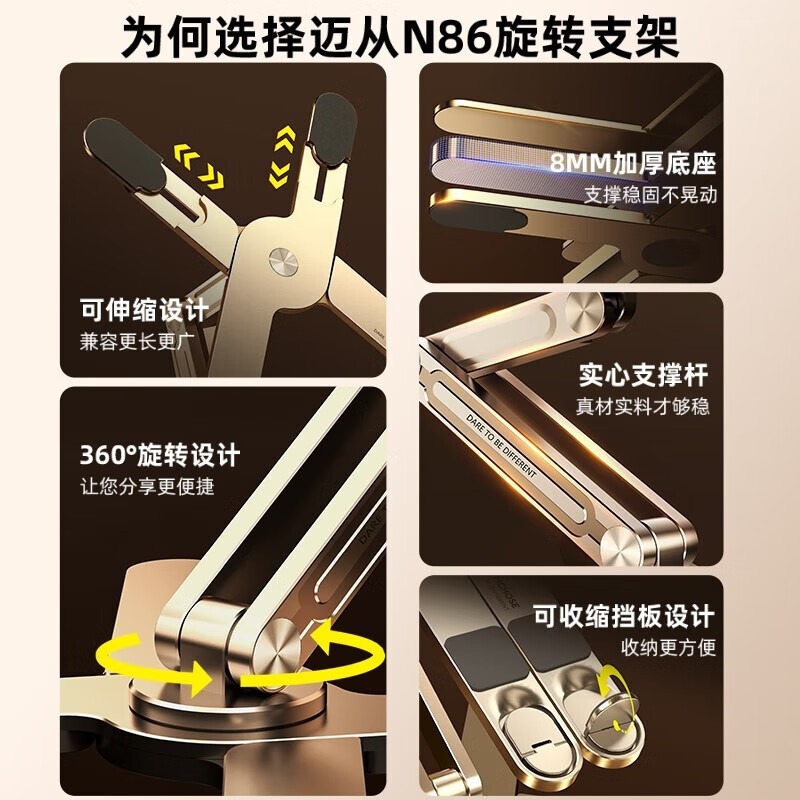 迈从N86笔记本支架立式增高散热电脑支架升降悬空360°旋转铝合金