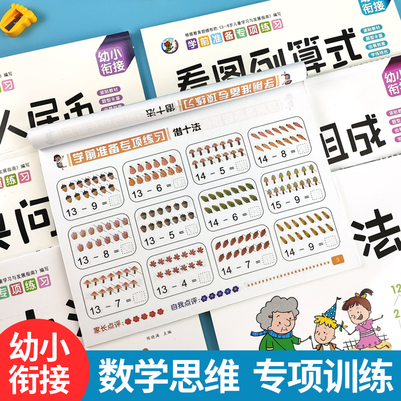 幼小衔接数学凑十法借十法破十法平十法算术练习册全套挂图教具学前一年级教材全套一日一练幼儿园大班题卡10/20以内加减法天天练