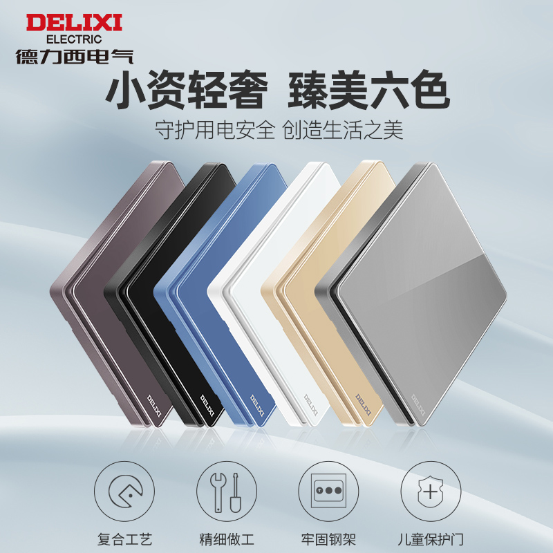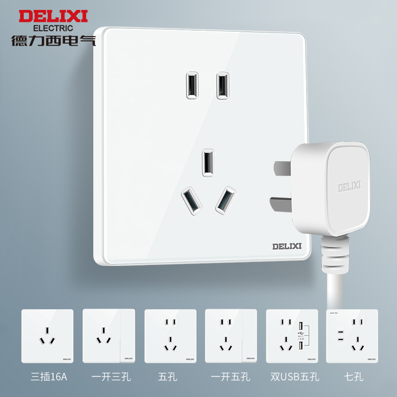 德力西玻璃镜面大板86型五孔双控电源家用开关16A插座面板881白