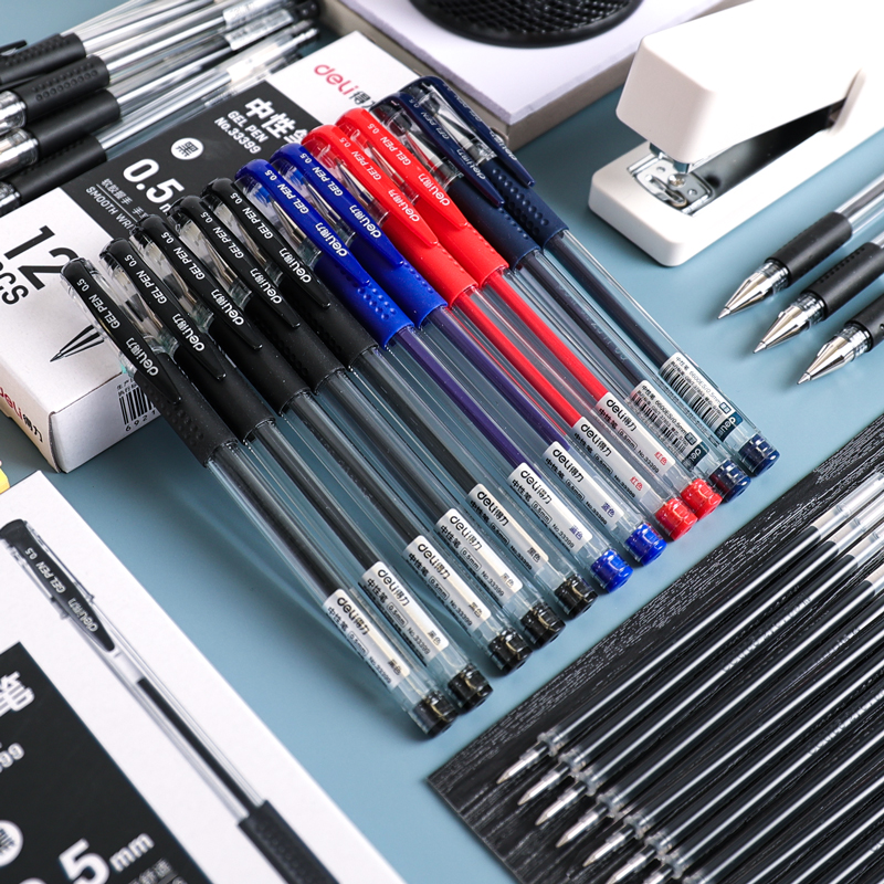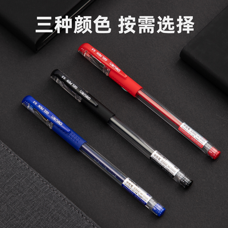 得力中性笔量贩装60支红笔黑笔0.5黑色水笔签字笔碳素笔学生文具用品签名笔水性笔考试刷题笔圆珠笔办公用品