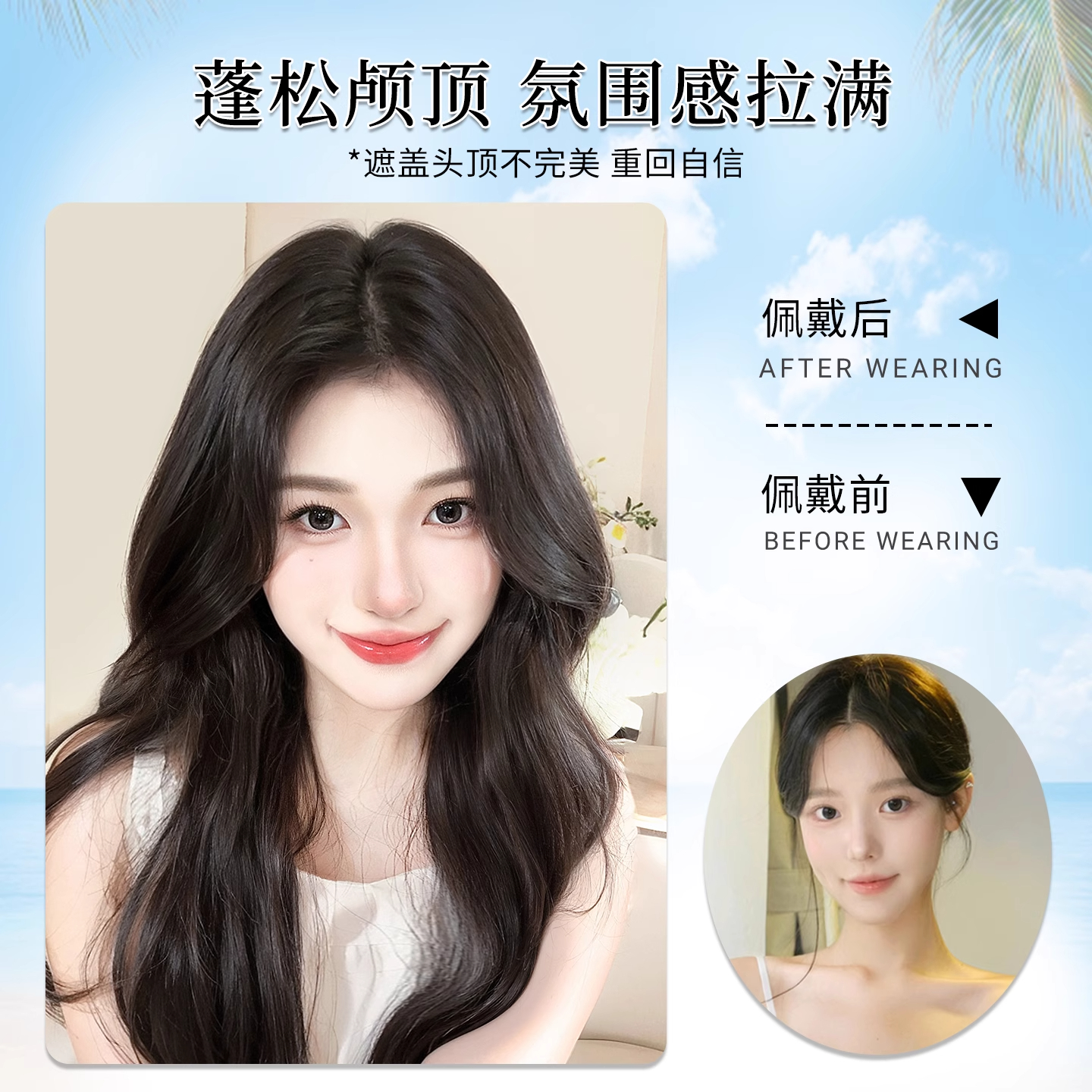 期桃假发女片头顶补发片自然无痕遮白发增发量蓬松高颅顶补发片