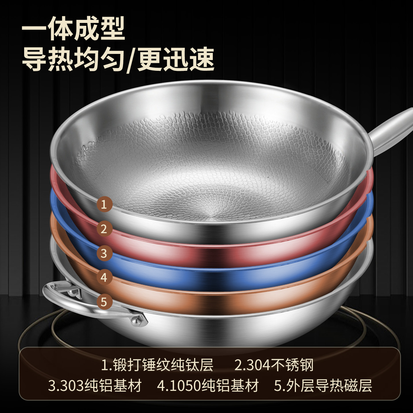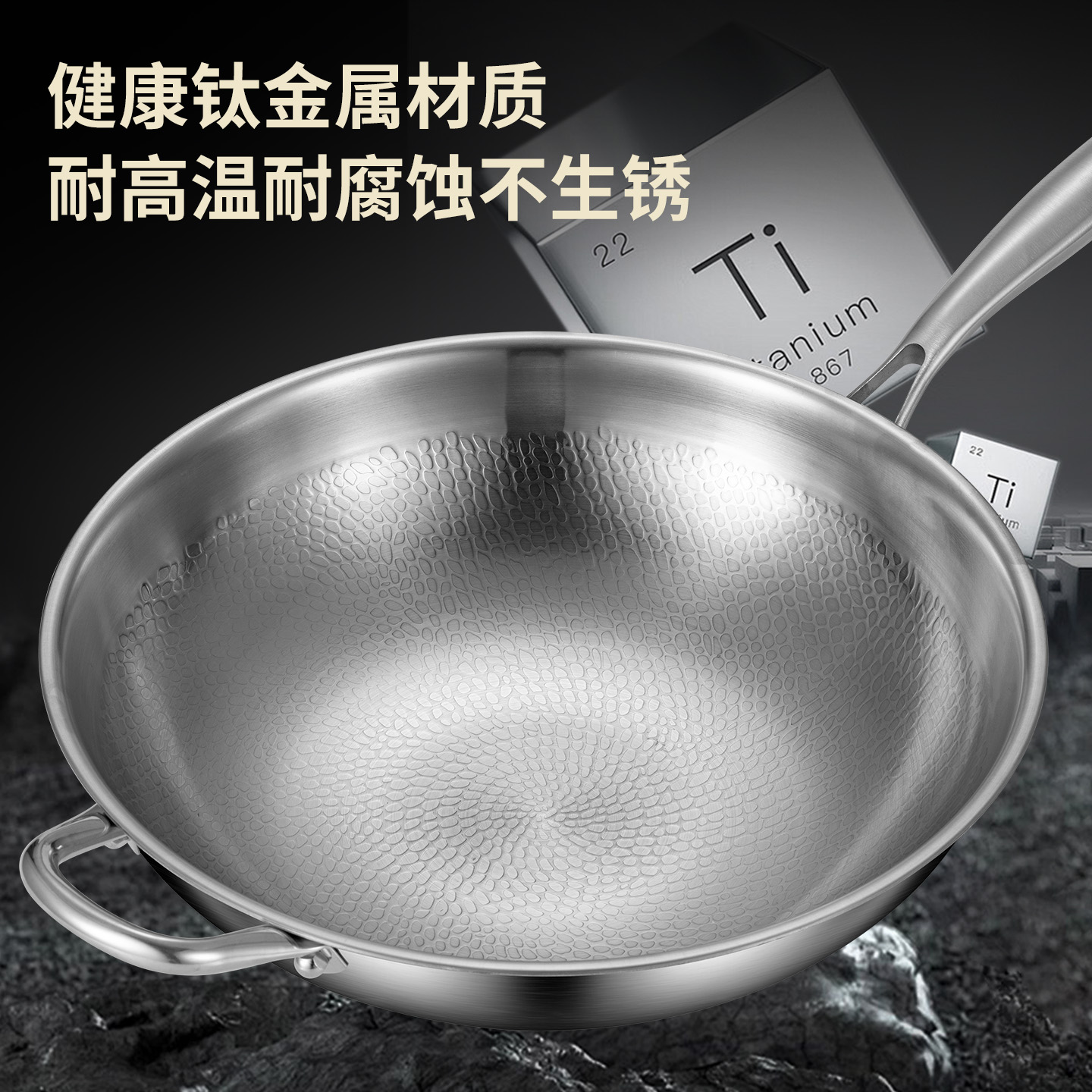 无涂层炒锅不粘锅有钛平底锅家用高端锤纹有钛锅加厚牛排平底煎锅