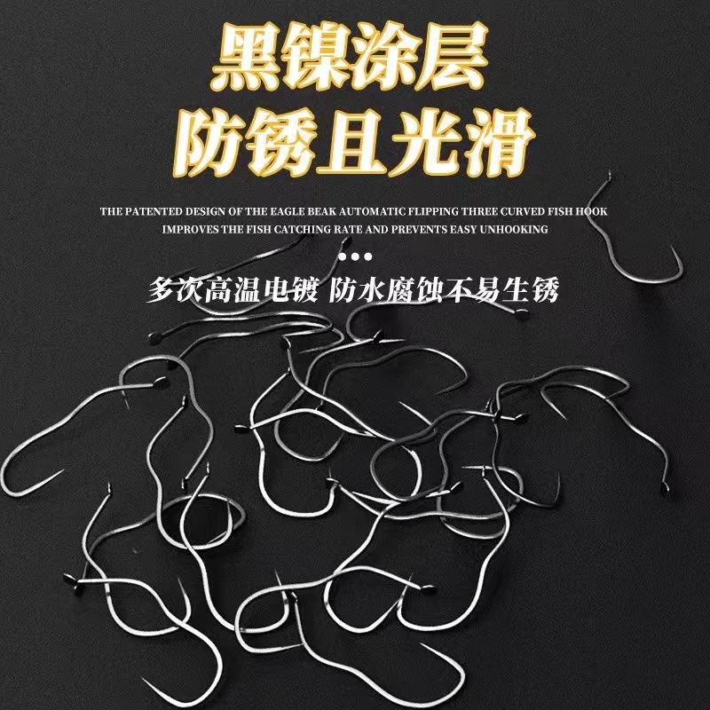 新型自动翻转野钓散装曲柄钩防吐钩细条有倒刺三弯钩钓鱼钩防脱口