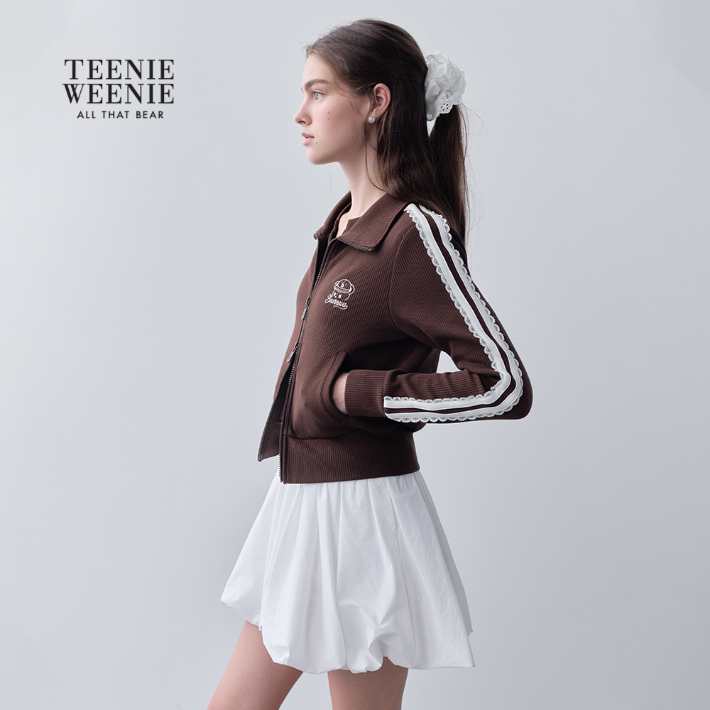 TEENIEWEENIE bearnova2025冬季新款女装休闲运动风拉链立领卫衣
