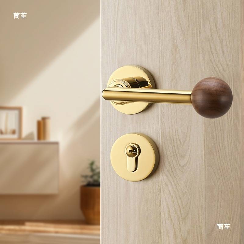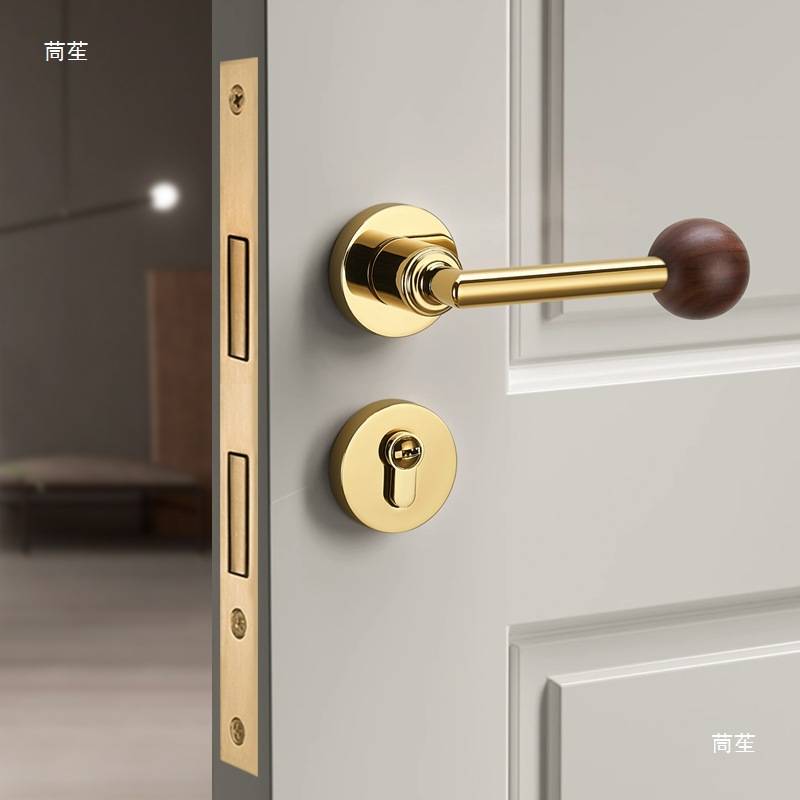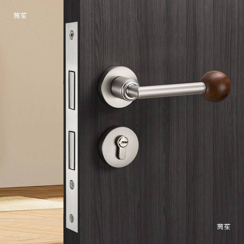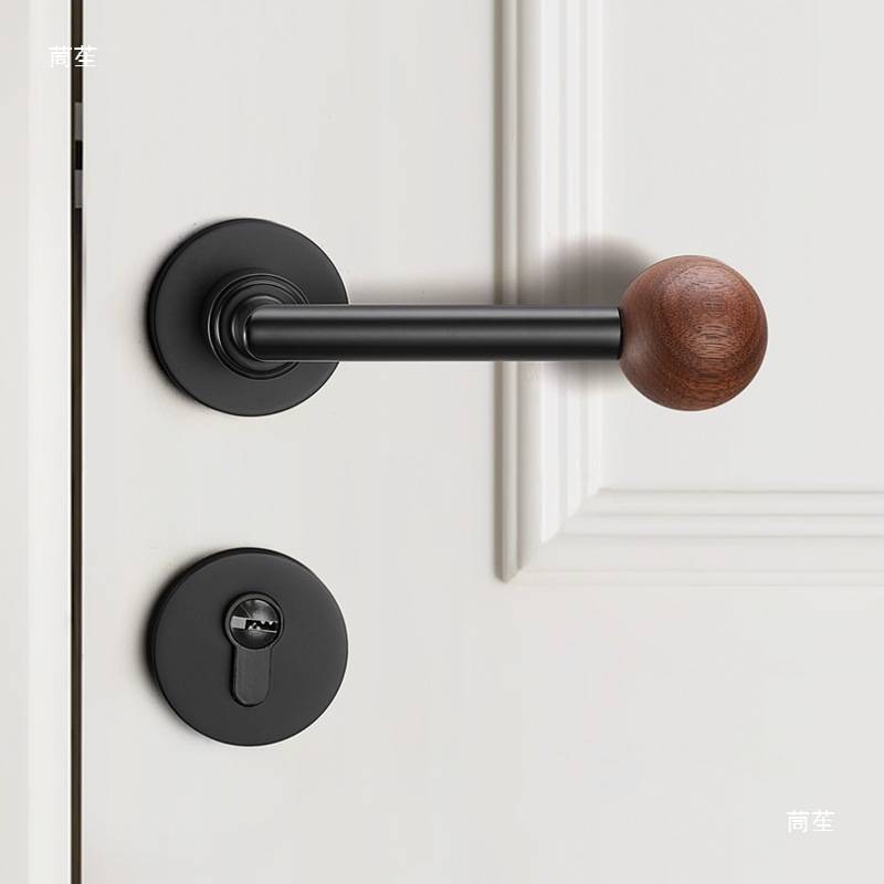 门锁室内卧室原木风家用实木房胡桃木中古风复古木质门锁把手其他