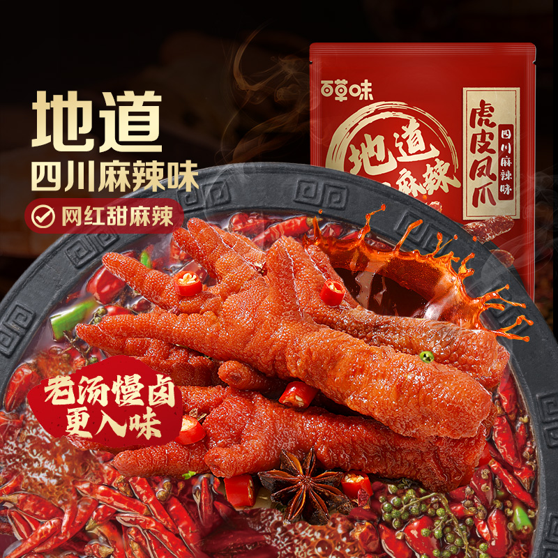 百草味虎皮凤爪卤香味鸡爪鸡肉熟食休闲零食网红办公室小吃