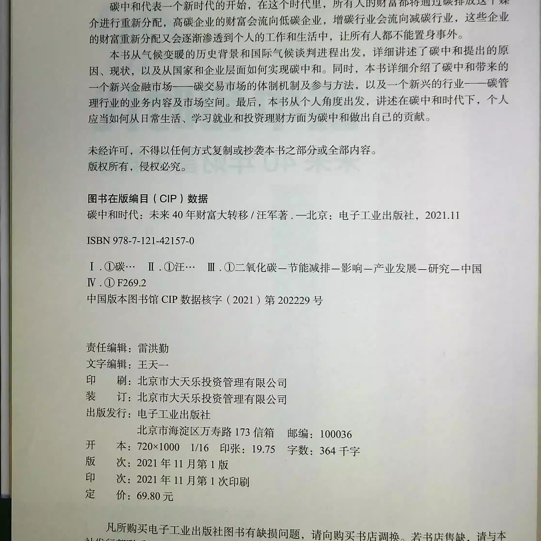 正版书籍 碳中和时代 未来40年财富大转移 汪军著通过碳抵消实现碳中和 梳理碳中和业务版图解读碳中和实现路径发掘碳中和财富密码
