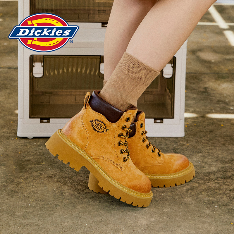 Dickies马丁靴女2025秋冬大黄靴加绒短靴工装靴户外厚底登山鞋女