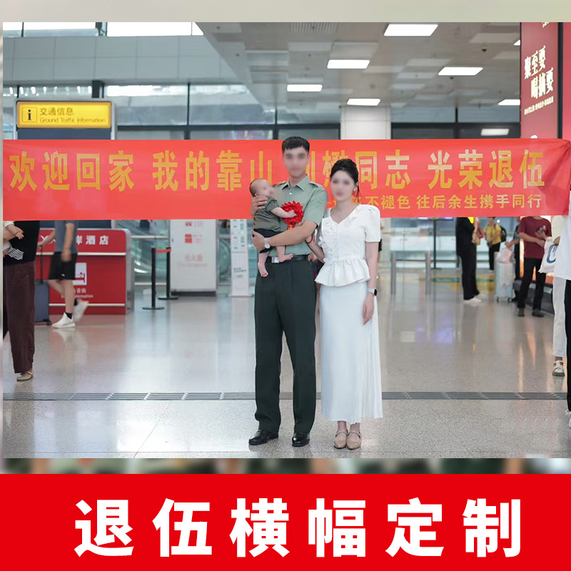 迎接退伍军人横幅欢迎回家光荣退役定制拉条接机布置订做退伍条幅