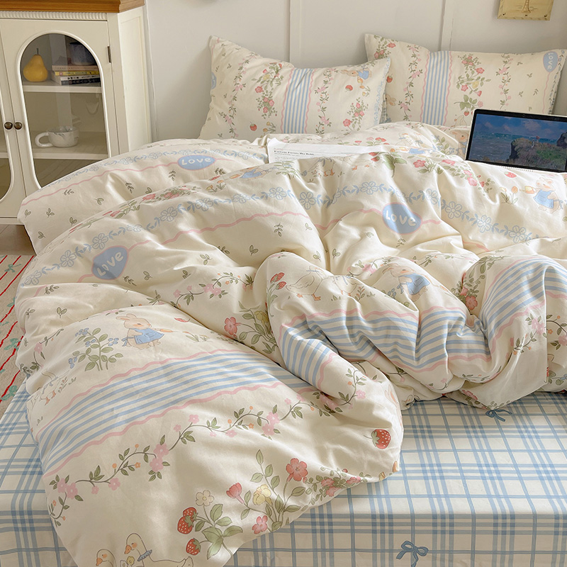ins四件套被套被罩床单床上用品学生宿舍单人非纯棉全棉三件套秋4