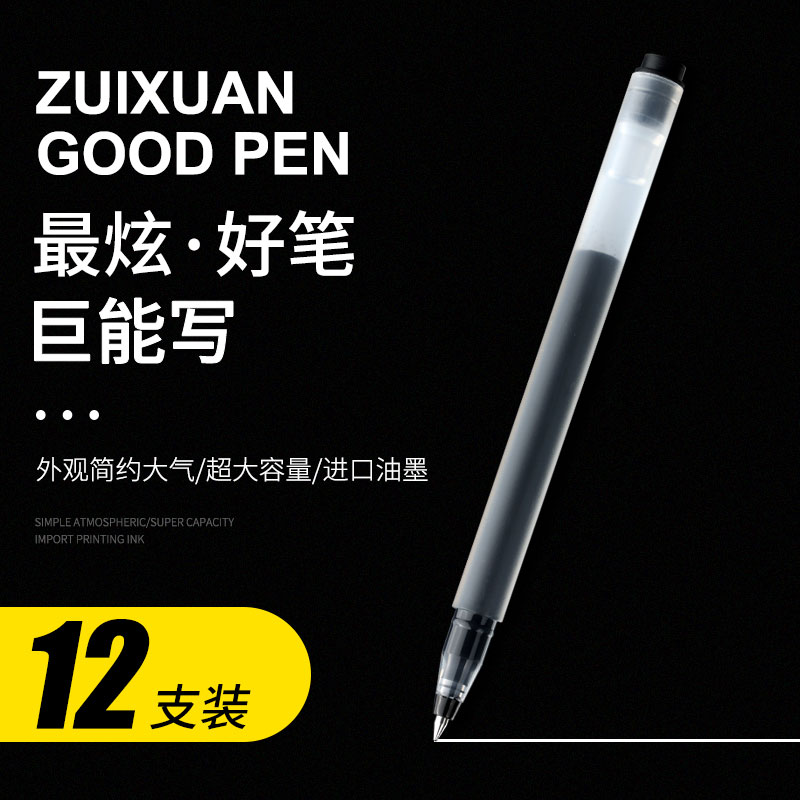 最炫巨能写中性笔超大容量一体化设计1700米书写长度4倍书写时长0.5mm子弹头碳素黑学生专用