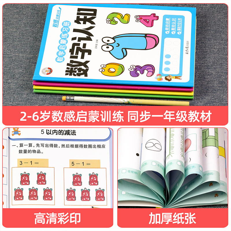 幼儿数学启蒙教材教具3到6岁宝宝数感思维训练幼儿园小中大班学前班幼小衔接练习册加减法练习题每日一练为一年级做准备逻辑专项