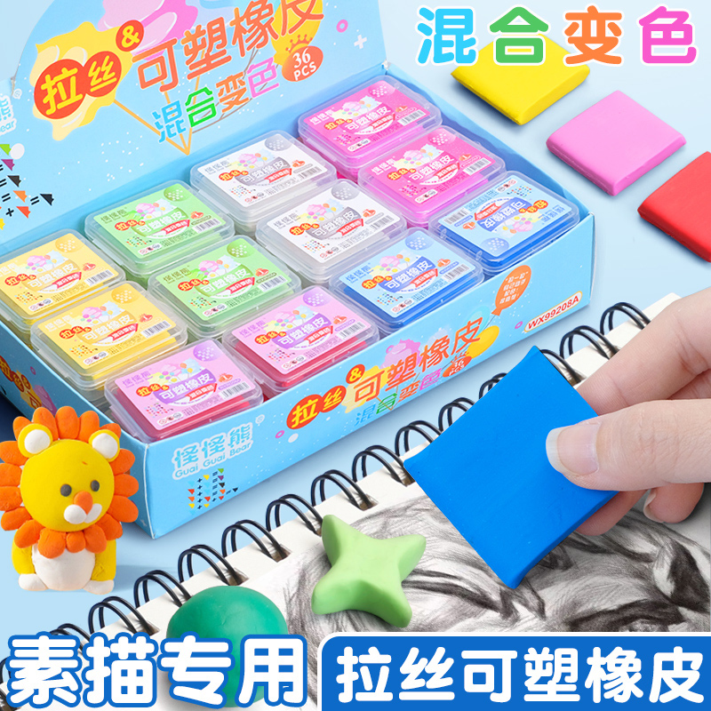 知远儿童拉丝橡皮擦可塑橡皮无碎屑彩色可变色塑形软像皮美术生素描高光绘图不留痕幼儿园软泥盒装礼盒圣诞
